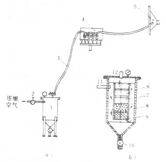 a)系統圖 b)部件1空氣過濾器的剖面圖