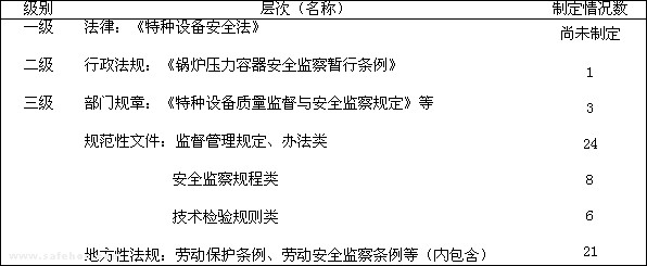表2 我國鍋爐壓力容器等特種設備法規體系現狀(迄2000年底)