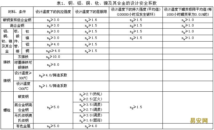 注:(1)當(dāng)無(wú)法確定設(shè)計(jì)溫度下屈服強(qiáng)度(條件屈服限),而以抗拉強(qiáng)度為依據(jù)確定許用應(yīng)力時(shí),n應(yīng)適當(dāng)提高。