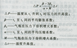 通常情況下,氣瓶內介質的壓力總是小于氣瓶的設計壓力,由于瓶內介質的膨脹系數比其壓縮系數大一個數量級,過量充裝的鋼瓶,隨著溫度上升到一定時候,壓力就會急劇上升,造成鋼瓶破裂,發生事故。滿液鋼瓶的壓力隨溫度上升而上升,瓶內壓力的變化可用下列公式進行計算: