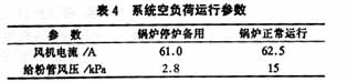 ??? 石灰石系統安裝和單體試運完畢后,進行分系統調試。在此期間,最好先進行空負荷試運,以考查系統性能,掌握系統空載時的運行參數,如風機的空載電流、給粉管空載時的風壓,這些參數對系統今后帶負荷運行具有相當大的參考價值。石灰石系統在鍋爐備用和鍋爐帶負荷時空負荷運行的主要參數見表4。