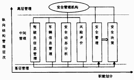 TSMIS是管理信息系統的具體應用和展開。它嚴格遵循科學的安全管理原則,采用了動態人機安全原理,結合動態風險評價與決策,是一套完整的管理信息系統。TSMIS主要的組成有:①駕駛員信息管理;②車輛信息管理;③安全管理信息化的實現;④安全動態管理即風險評價。如圖1所示。