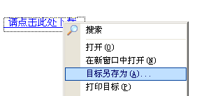 ”的提示,點擊鼠標右鍵,出現如圖 ,選擇目標另存為,就可將文件進行保存到本地。