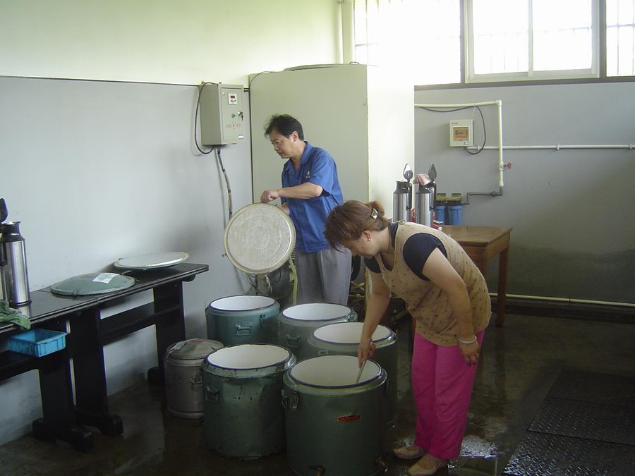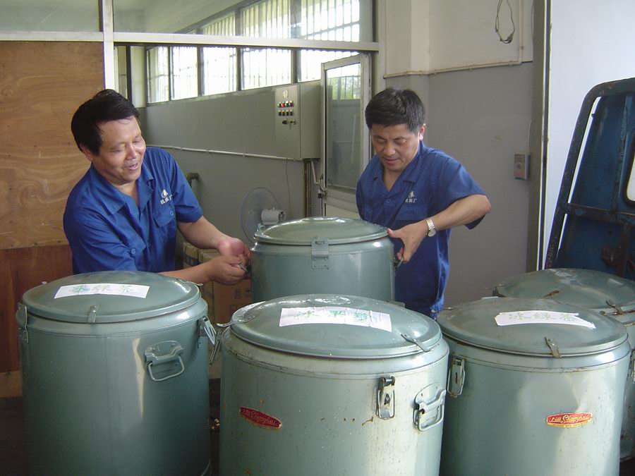 進入盛夏,湖州機床廠的液壓機訂單已排到了年底,面對火熱的市場與火熱的天氣,湖州機床廠非常注重盛夏的防暑降溫工作,盡最大可能給一線工人創造良好的作業環境,在生產車間現場,公司給每一部車床和裝配作業線都配備了電風扇或排風扇,職工食堂安裝了空調,提供免費午餐,變著花樣調換每周的三菜一湯食堂菜譜,除此之外,公司還添置冷飲機,天天將清涼飲料送到生產第一線,考慮到不同年齡員工的口味,清涼飲料的品種也多種多樣,有檸檬型冰果珍飲料,原料不含糖精,均用純白糖和正品果珍制成,還有用綠茶、菊花和枸杞子制成的冰綠茶飲料,員工對此都非常滿意。圖為公司總經理陸建新和工作人員在將冰鎮飲料送到生產第一線。
